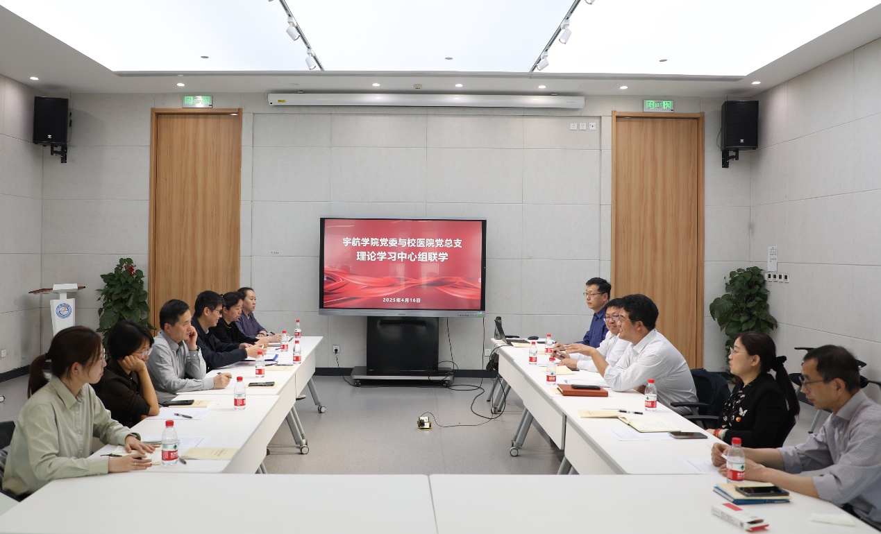 2025年4月16日下午,宇航学院党委和校医院党总支在沙河校区主楼D409开展理论学习中心组联合学习会。会议围绕深入学习领会习近平总书记关于人工智能和加强党的作风建设重要论述主题,结合双方工作实际开展学习研讨,会议由宇航学院党委书记徐亚军主持。
