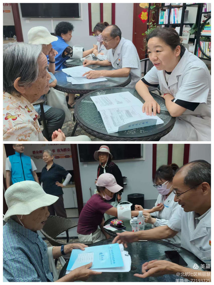 为积极响应2025年北京市老年健康宣传周号召,提升老年人健康素养,2025年6月26日,校医院各党支部以“党建+志愿服务”模式为引领,联合北航社区居委会和离退休工作处,开展了以“七一党员践初心,义诊解读护健康”为主题的老年健康宣传周系列活动,为老年人提供“义诊+急救培训+健康讲座+体检报告解读”的全方位健康服务。