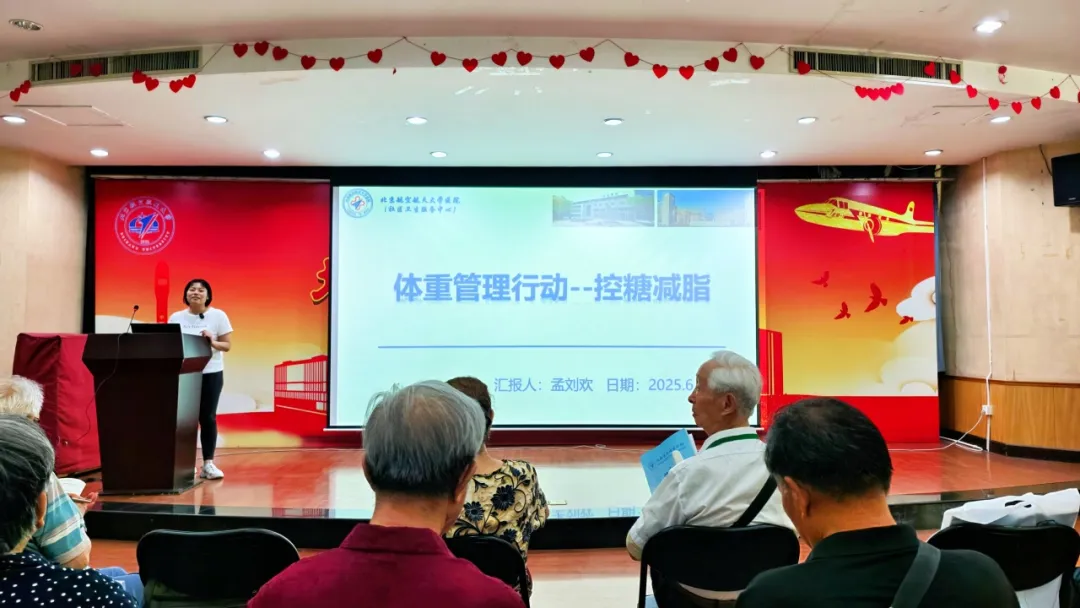 6月26日上午在北航离退休工作处活动现场,校医院内科主治医生孟刘欢以《体重管理系列讲座——控糖减脂攻略》为题,为老同志们带来了一场精彩讲座。孟医生指出,2024年国家卫生健康委会同有关部门启动实施“体重管理年”活动,旨在提升全民体重管理意识和技能,预防超重肥胖,推动慢性病防治关口前移。
