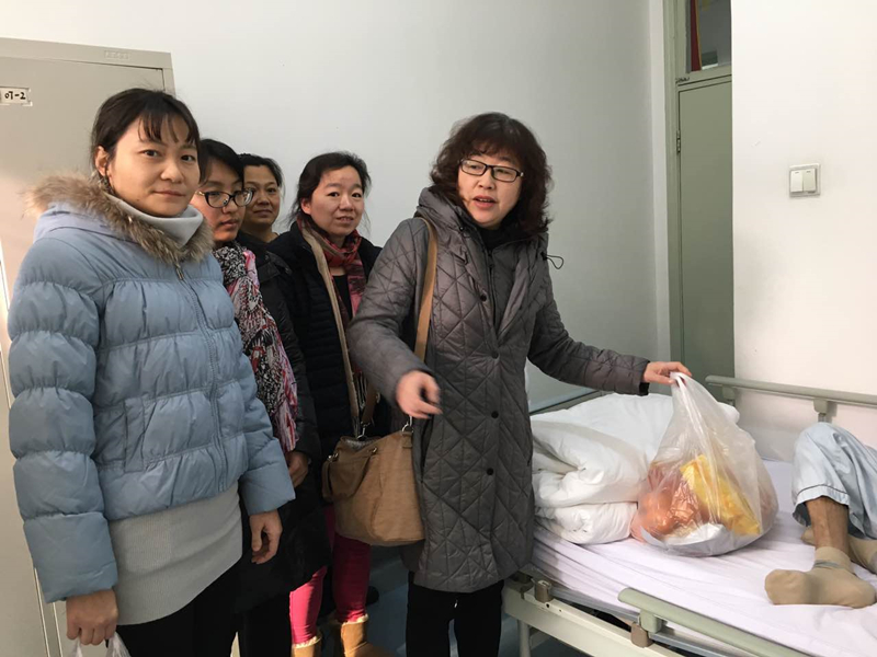 为推进“两学一做”学习教育的深入开展,严格落实“党员活动日”制度,进一步增强宗旨意识和群众观念,切实转变作风,校医院内科党支部和药剂科及护理部党支部,在校医院副院长、党总支副书记曹丽娟带领下,于2016年12月30日走进佑安医院感染科病房和志愿者组织----爱心家园恬园工作室,了解并学习了艾滋病防治最前线的医护人员的工作,并慰问了在佑安医院感染科住院的艾滋病患者。
