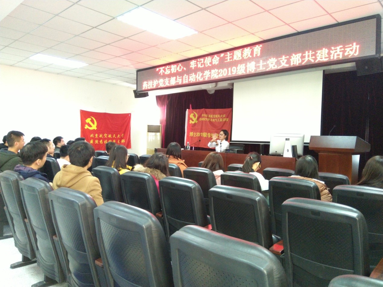 为扎实开展“不忘初心、牢记使命”主题教育,激发支部党员爱岗敬业、立德树人的奋斗意志, 12月5日下午,校医院党总支药技护党支部与自动化学院BY1903党支部在校医院四层报告厅开展了“不忘初心、牢记使命”主题教育支部共建活动。