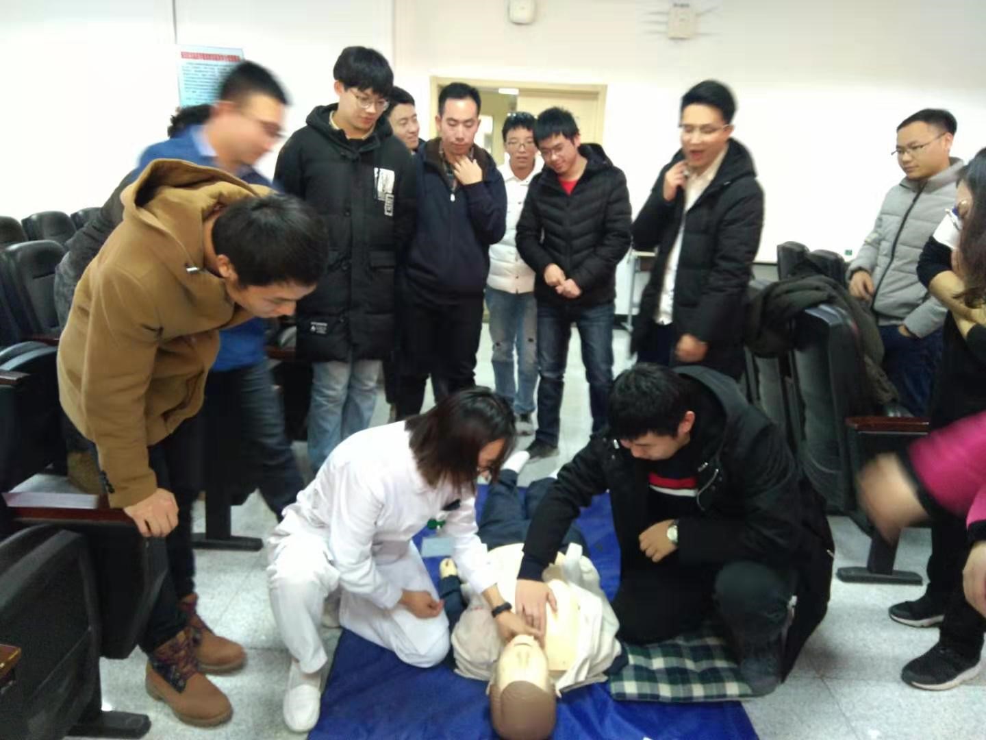 活动伊始,校医院党总支委员曹丽娟副院长对同学们的到来表示热烈的欢迎,强调校医院有义务也有责任对学生群体推广心肺复苏等急救知识;同时寄语博士班同学在科研工作之余,要注意自身健康,注重劳逸结合。随后王海玉护士长为全体参训同学介绍了了解心肺复苏相关知识的重要性以及心肺复苏的相关理论知识,并进行了现场演练,受训同学们纷纷表示受益匪浅,对心肺复苏有了更深层次的理解。