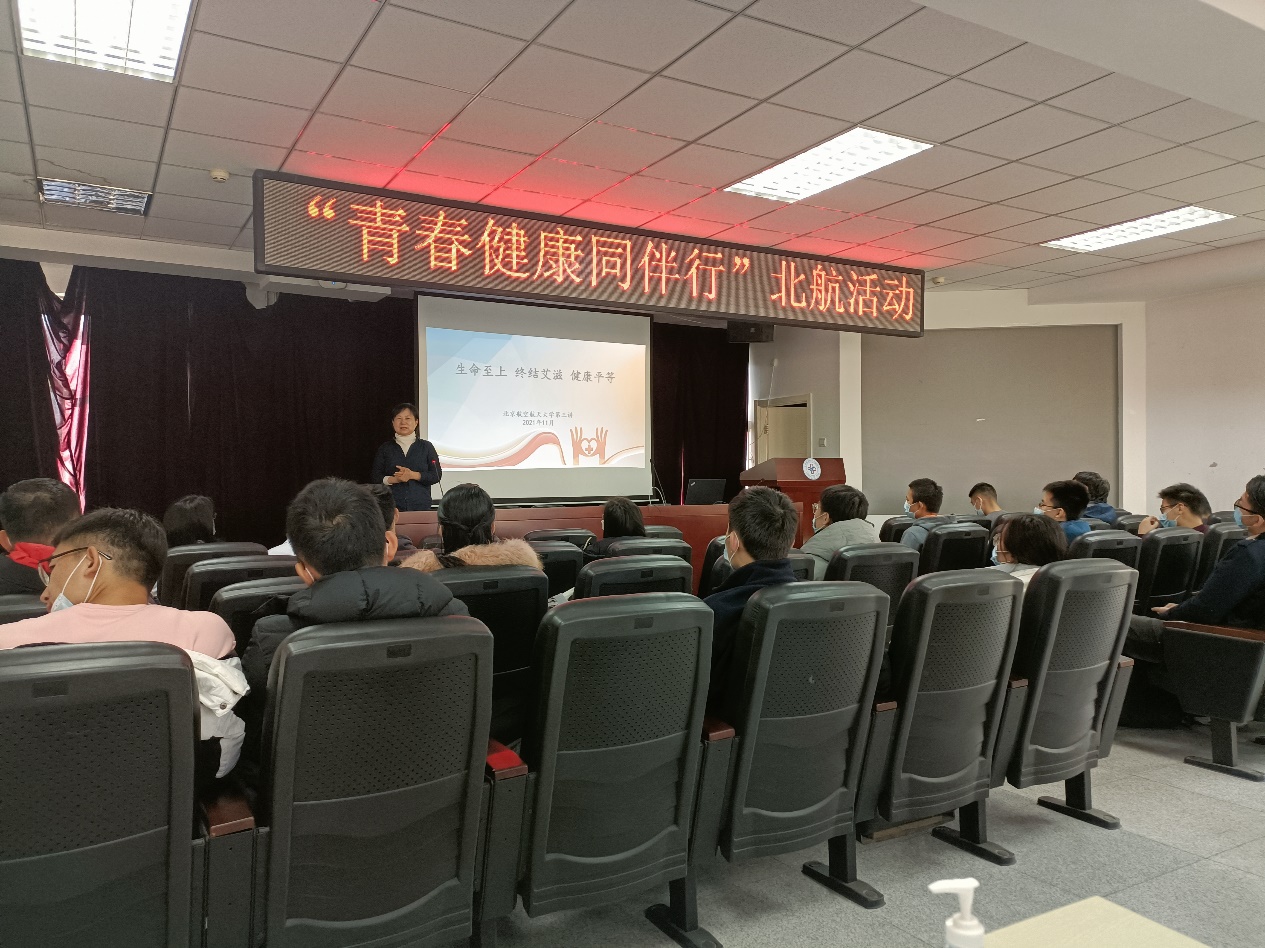 正值“12.1”世界艾滋病日之际,为增进学生对艾滋病的认识,宣传普及预防艾滋病知识。11月24日,北航校医院第一党支部与电子信息工程学院研究生党支部联合开展“青春健康同伴行”防艾宣讲活动,活动邀请北京市性病与艾滋病防治协会副会长福燕老师和恬园工作室负责人段君义老师主讲,原校红十字会秘书长曹丽娟致欢迎词。