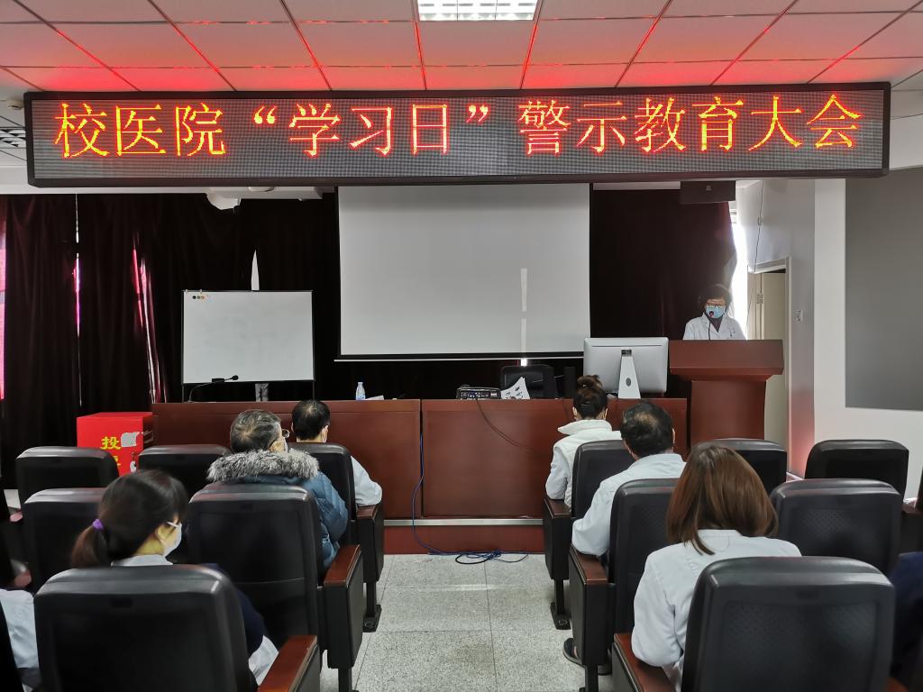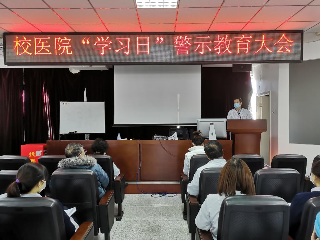 2020年12月30日,校医院“学习日”召开警示教育大会,学习传达学校警示教育大会精神,全院职工参会。