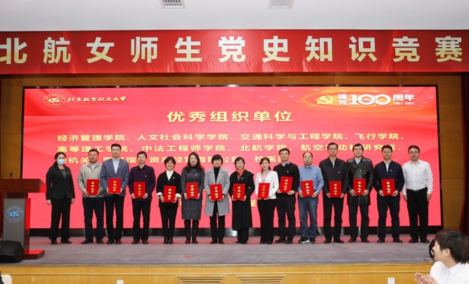 3月7日,为党庆生、为“她”喝彩—北航女师生党史知识竞赛决赛现场,校医院代表队以机智、沉稳的表现赢得冠军,并获得风采展示奖和优秀组织单位。在“党史中的女英雄”风采展示环节,党员卢艳讲述了沂蒙母亲明德英用乳汁救治伤员的故事,现场深情演唱沂蒙小调。此前,校医院工会积极选派两支队伍参加比赛,有多位参赛同事在疫苗接种岗位上,当日参加初赛后还要赶紧返回接种点工作,代表队一路“过关斩将”冲进决赛,分获冠军和二等奖的好成绩!学党史、悟思想、办实事、开新局,校医院会以更加拼搏的姿态和优异成绩迎接建党一百周年。